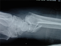 These fractures are partial intra-articular fractures i.e. fractures that go into the joint. By definition they are less unstable and much more likely to need some form of operation to fix and hold the fractures. These fractures are like big chip fractures and the dorsal Barton's fracture come off the back of the wrist and the volar Barton's fracture comes off the front of the wrist. Certainly with a volar Barton's fracture there are very strong ligaments that attach to the fragment and if this fragment gets displaced the rest of the carpus and hand goes with it and therefore these are called flexor fracture sub-luxations (sub-luxation is a partial dislocation). These have to be fixed with plates and generally the volar Barton is fixed with a plate from the front and dorsal Barton is fixed with a plate from the back.